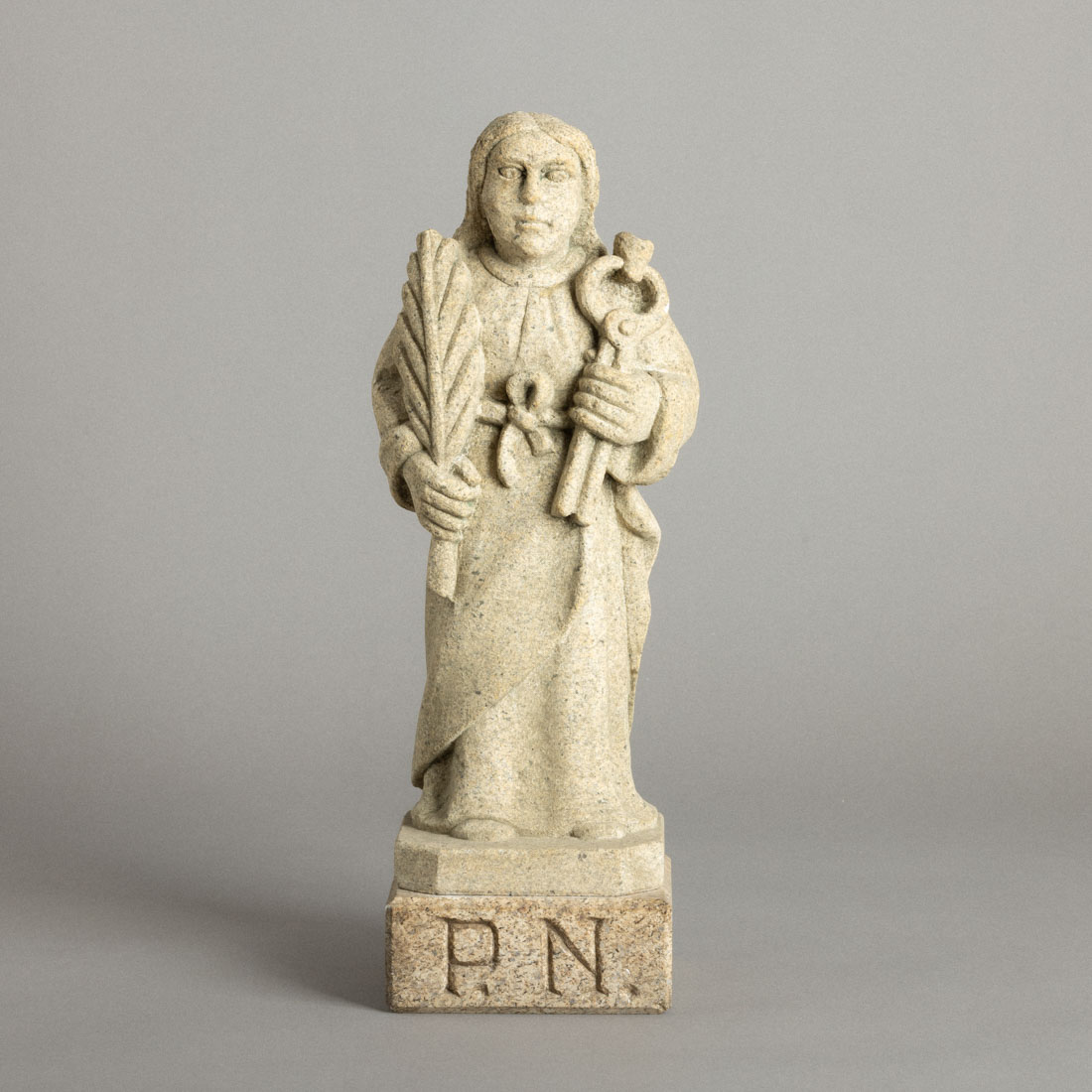 Escultura em granito, com base. Sinais de uso e pequenas falhas.
