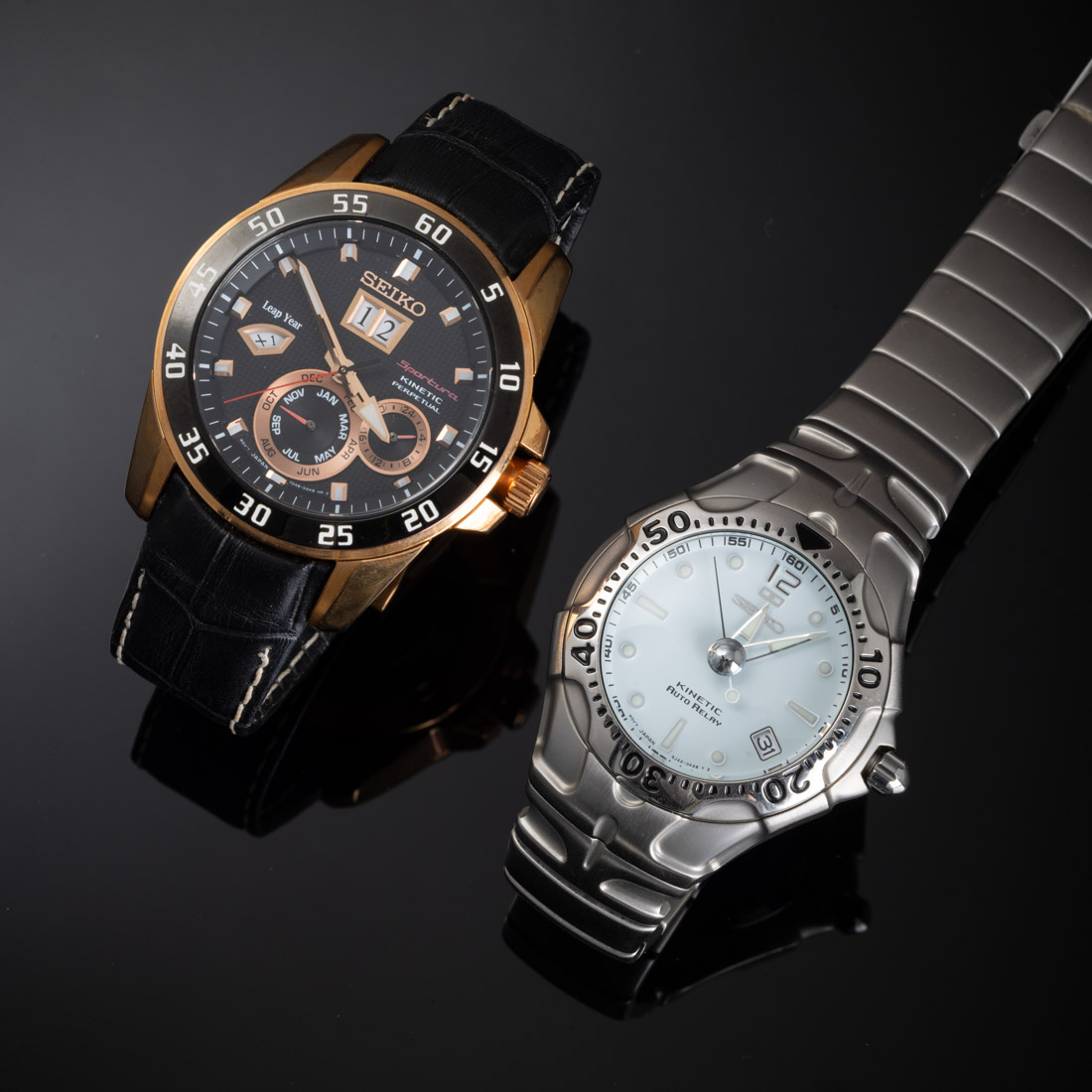 373. DOIS RELÓGIOS DE PULSO SEIKO "KINETIC AUTO RELAY" E "SPORTURA"