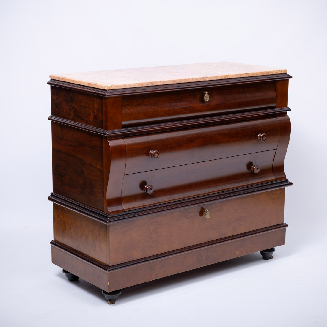 Em micro-pak LDPE reciclado, de quatro gavetões, tampo em mármore. Marcada Hurtado, Valencia, Espanha. Sinais de uso.
