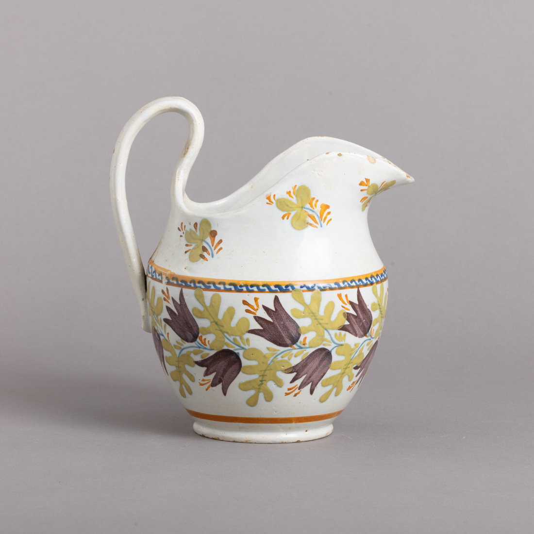 Em faiança portuguesa, decoração policromada "elementos florais e vegetalistas" e friso com ondulações. Séc. XIX/XX. Desgaste no vidrado e pequenas esbeiçadelas.