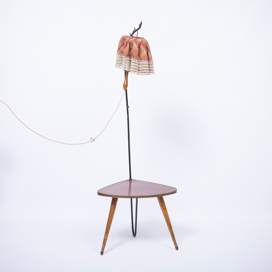 Em madeira, metal e outros materiais, tampo em formica. Anos 50. Pequenas falhas e defeitos.