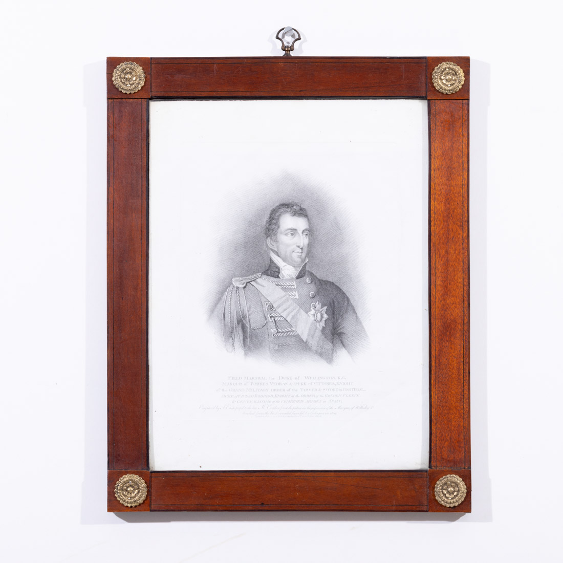 Gravura a negro sobre papel. Moldura em vinhático e pau santo ao estilo império. Ligeiros vincos e pequenas manchas.