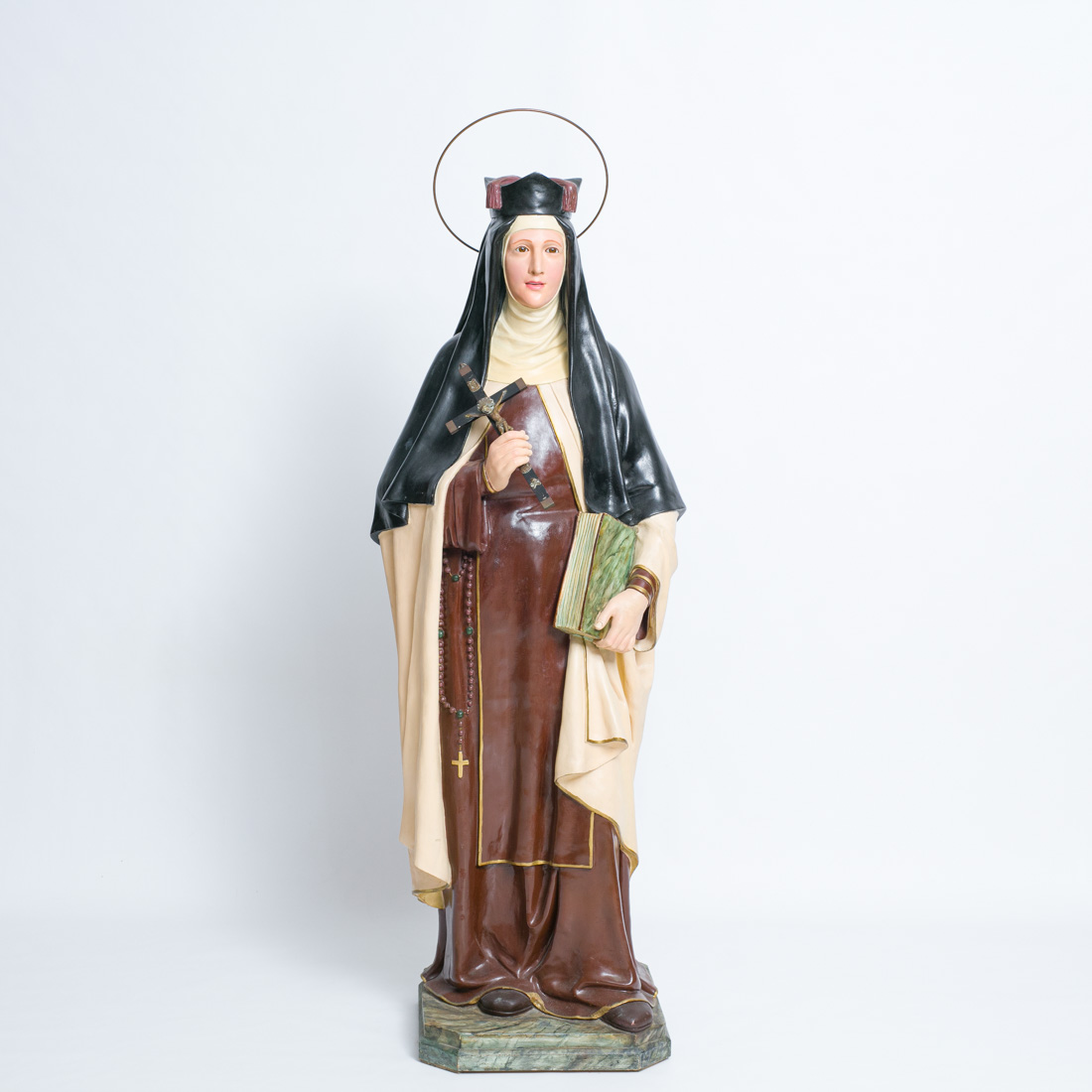Olot, escultura decoração policromada, repintada, base em madeira. Sinais de uso.