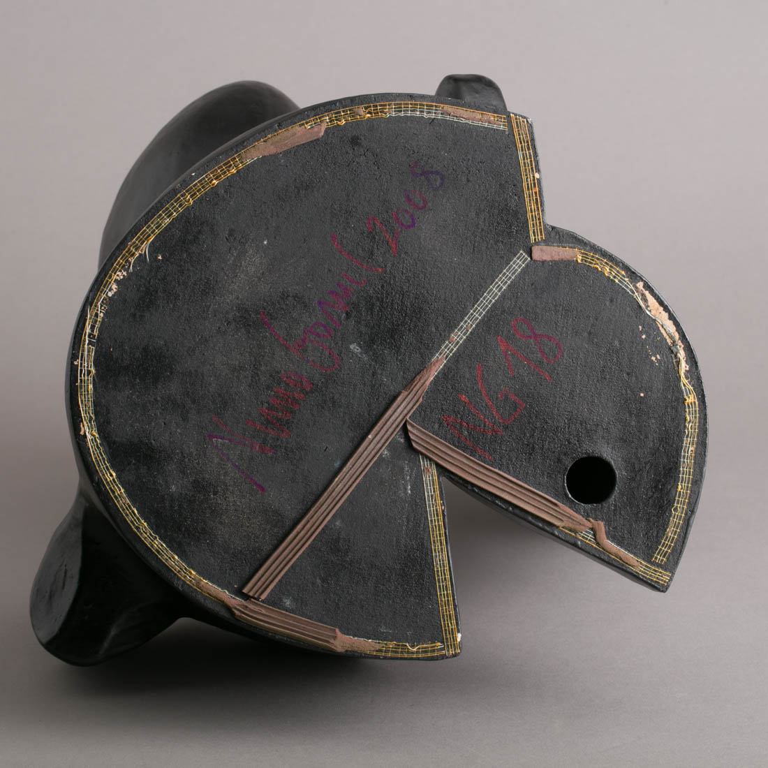 Em cerâmica vidrada, decoração a negro. Assinada Nuno Gomes e datada 2008 na base. Sinais de uso.