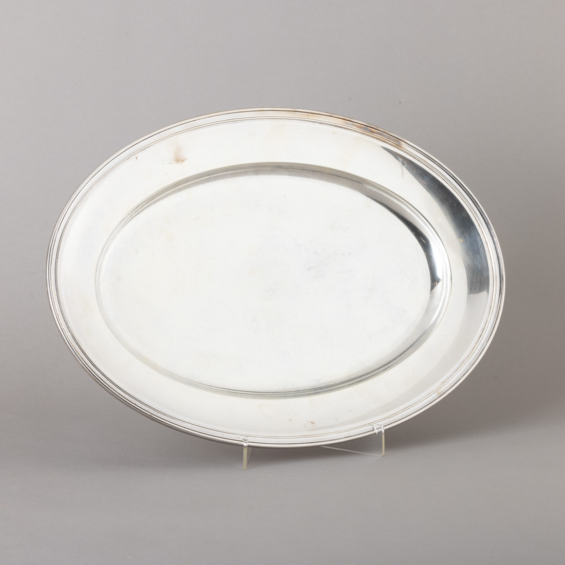 Em metal prateado Christofle, decoração lisa com friso relevado. Francês, Séc. XX. Sinais de uso.