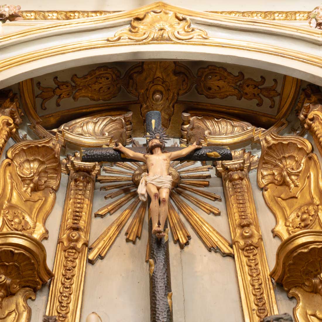 Em madeira entalhada pintada e dourada. Séc. XIX. Pequenas falhas e defeitos.