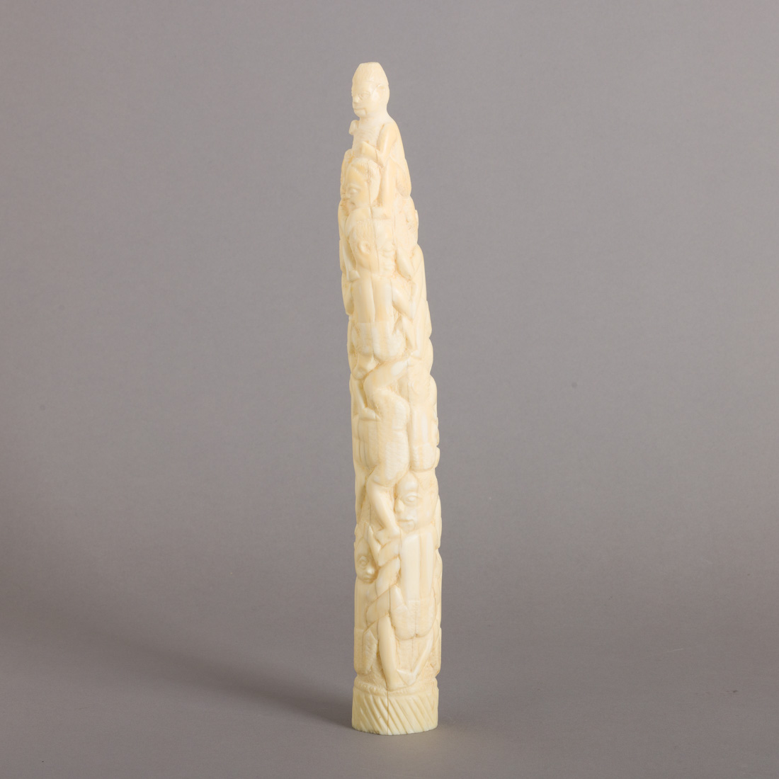 Esculpido em dente de hipopótamo, representando Ujamaa (família). África. Fissuras e pequenos defeitos.