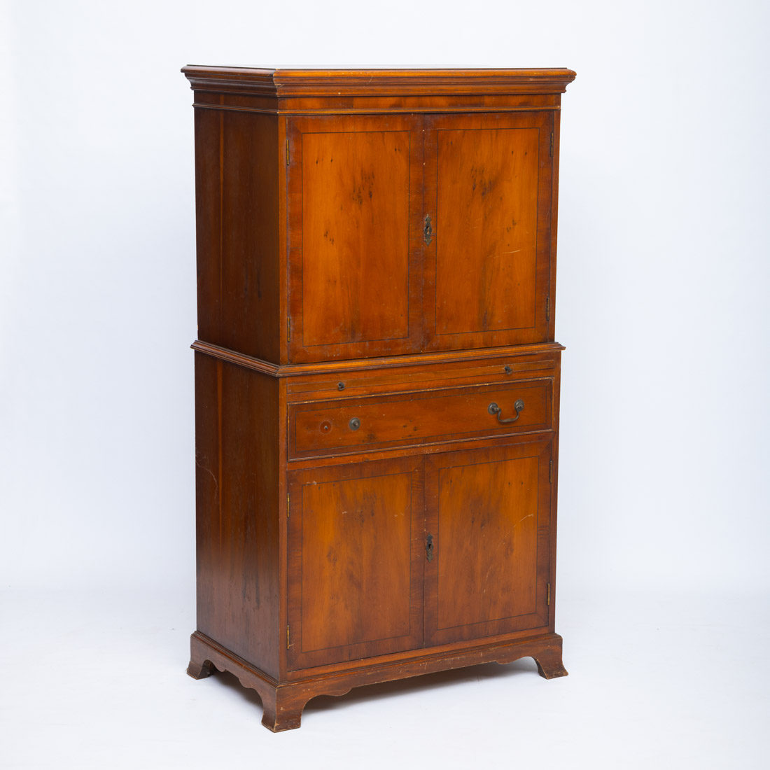 Estilo Inglês, em madeira de quatro portas, gaveta e estirador. Pequenas falhas e defeitos.