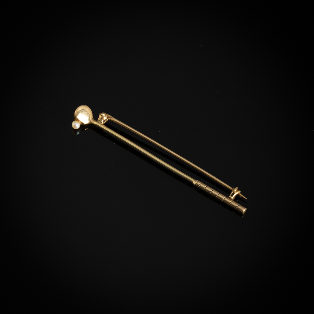 Em ouro de 14Kt., cravejado com perola. Sem marcas, ao abrigo do Decreto-Lei n.º 120/2017. Sinais de uso.