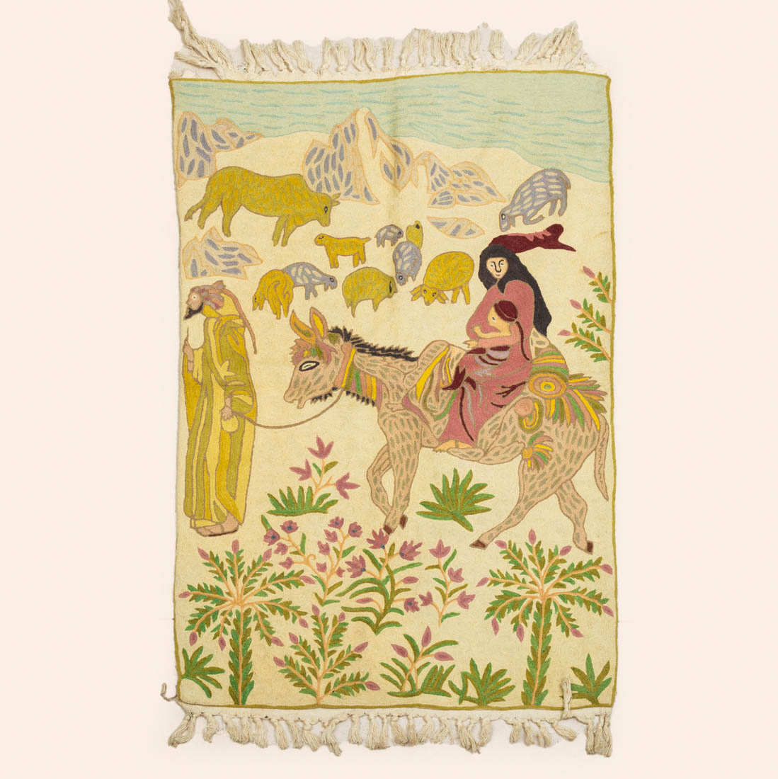 Tapeçaria bordada, decoração policroma. Pequenos defeitos.