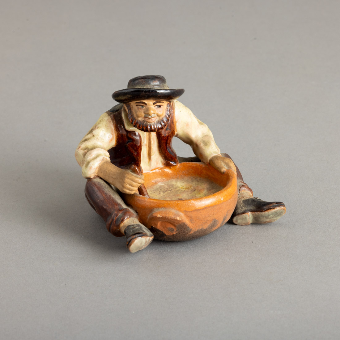 Escultura em cerâmica vidrada das Caldas, decoração policromada. Marcada e Made in Portugal. Sinais de uso, pés colados