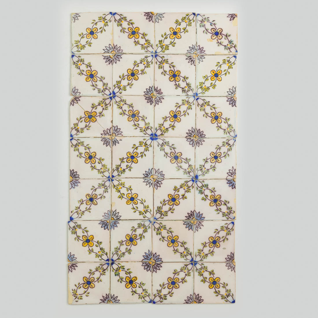 Em cerâmica vidrada, decoração policromada "flores". Pequenos defeitos e um partido.