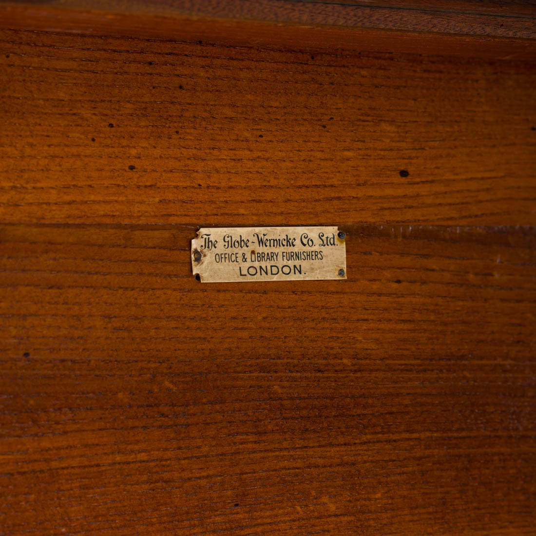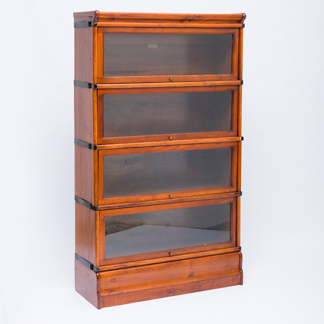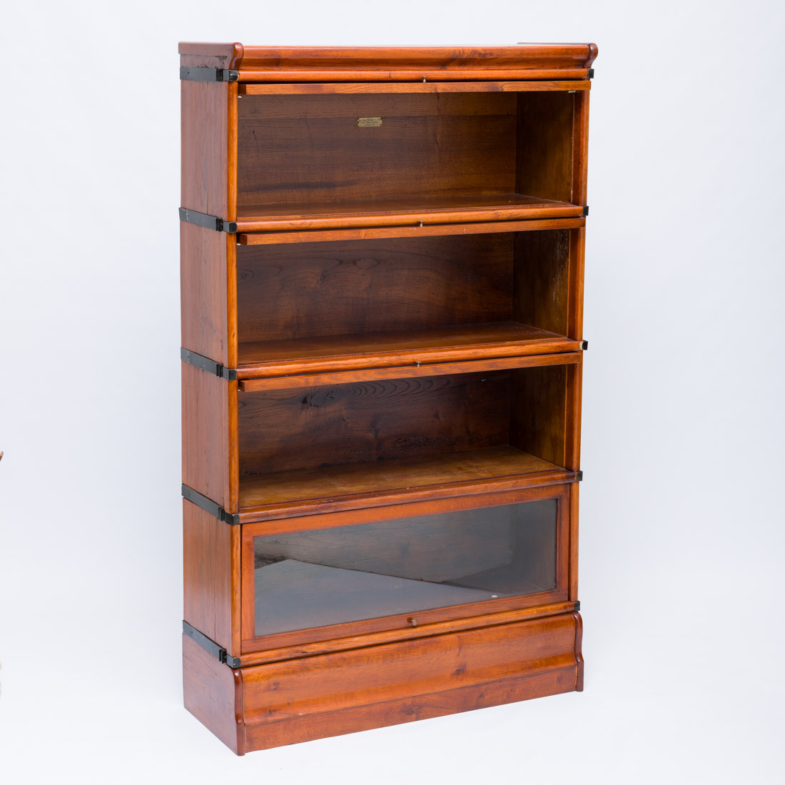 Em carvalho, composto por quatro módulos e base e cimalha independentes, portas de recolher em vidro. Marcado "The Globe Wernicke Co. Ltd. - London". Pequenos defeitos.