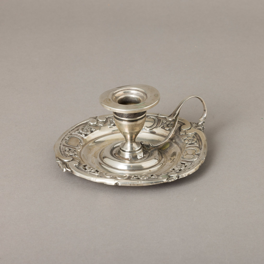 Em prata portuguesa contraste javali (1887-1937) de 833, decoração relevada e vazada com enrolamento e flores. Pequenas falhas, defeitos e amolgadelas.