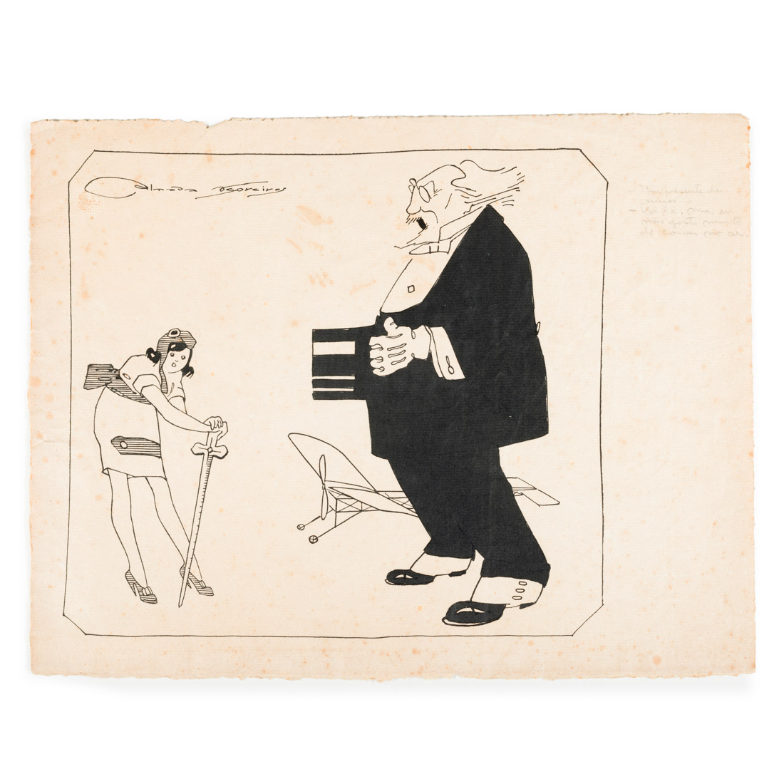 Tinta da china sobre papel, assinado e não datado. Legenda: «um presente de annos... - Vàlà. Mas eu não gosto muito de coisas no ar». Integrou a exposição realizada pela Fundação Calouste Gulbenkian - C.A.M. entre 20 de Julho e 14 de Outubro de 1984, estando referenciado no catálogo da exposição com o nº 193.
