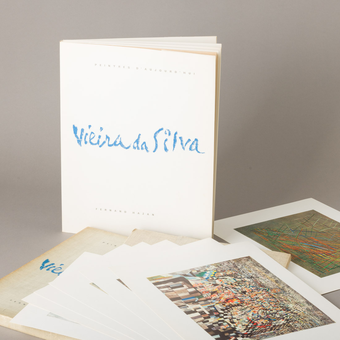 Álbum com 12 reproduções sobre papel, acompanhado de biografia e curriculum de Vieira da Silva por Fernand Hazan. Com caixa. Sinais de uso.