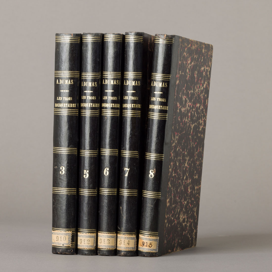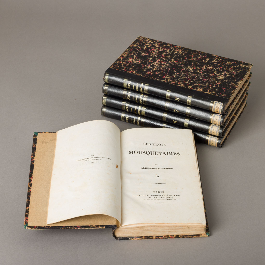 Paris, Baudry, 1844. 5 volumes de 8 volumes, revestidos de meia-encadernação com gravados a ouro. 1º Edição. Aparado e com alguns picos de acidez.
