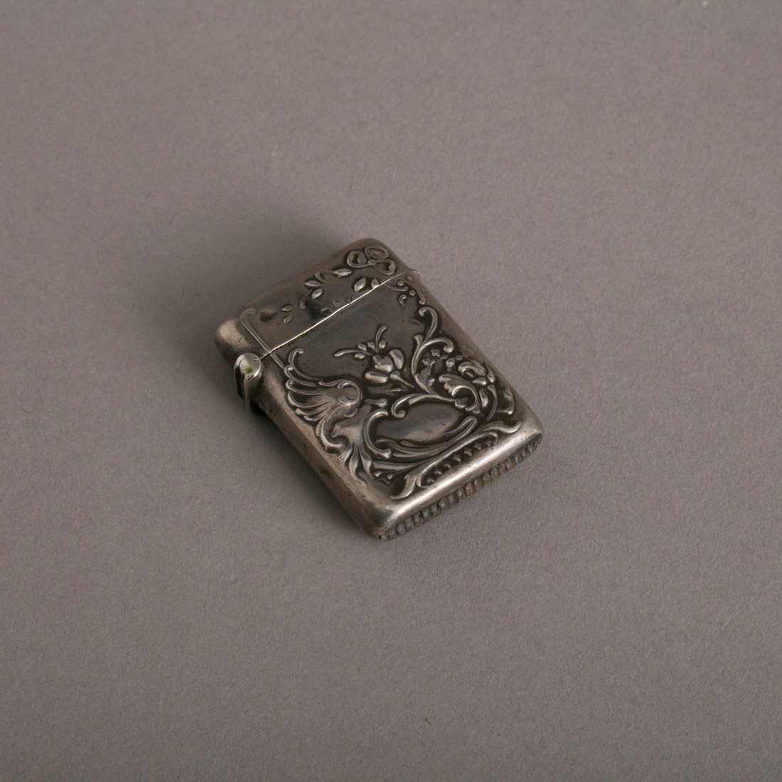 Em prata portuguesa contraste javali (1887-1937) de 833, decoração relevada "flores". Sinais de uso, pequenas amolgadelas.