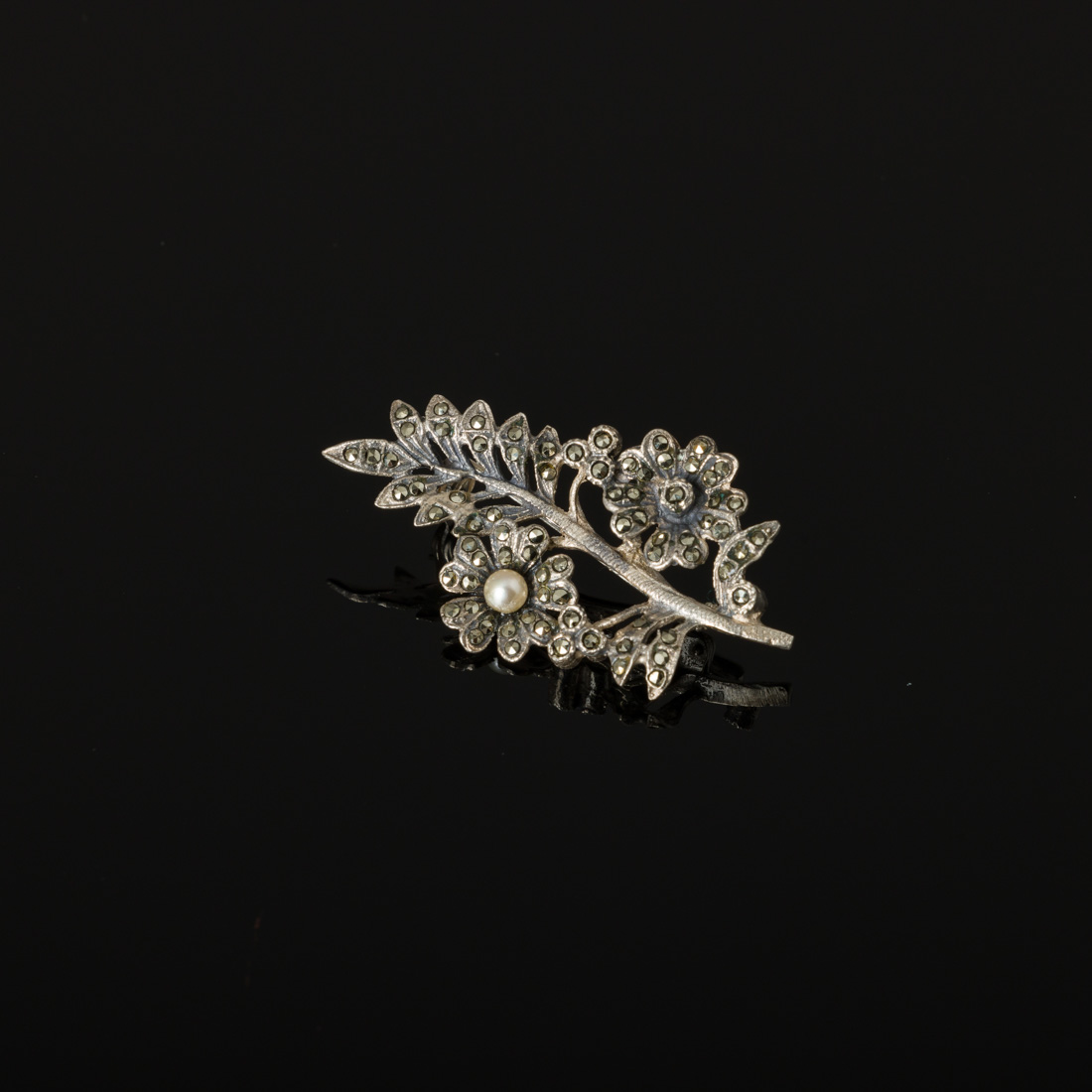 Em prata portuguesa contraste águia (pós 1985) de 835, cravejada com marcassites.