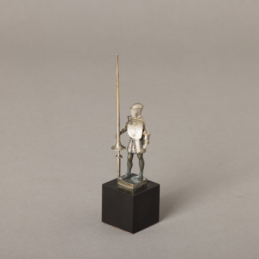 Escultura em prata espanhola de 915 marcas de garantia de teor (pós 1934), base em mármore. Sem marcas portuguesas, ao abrigo do Decreto-Lei n.º 120/2017. Sinais de uso.