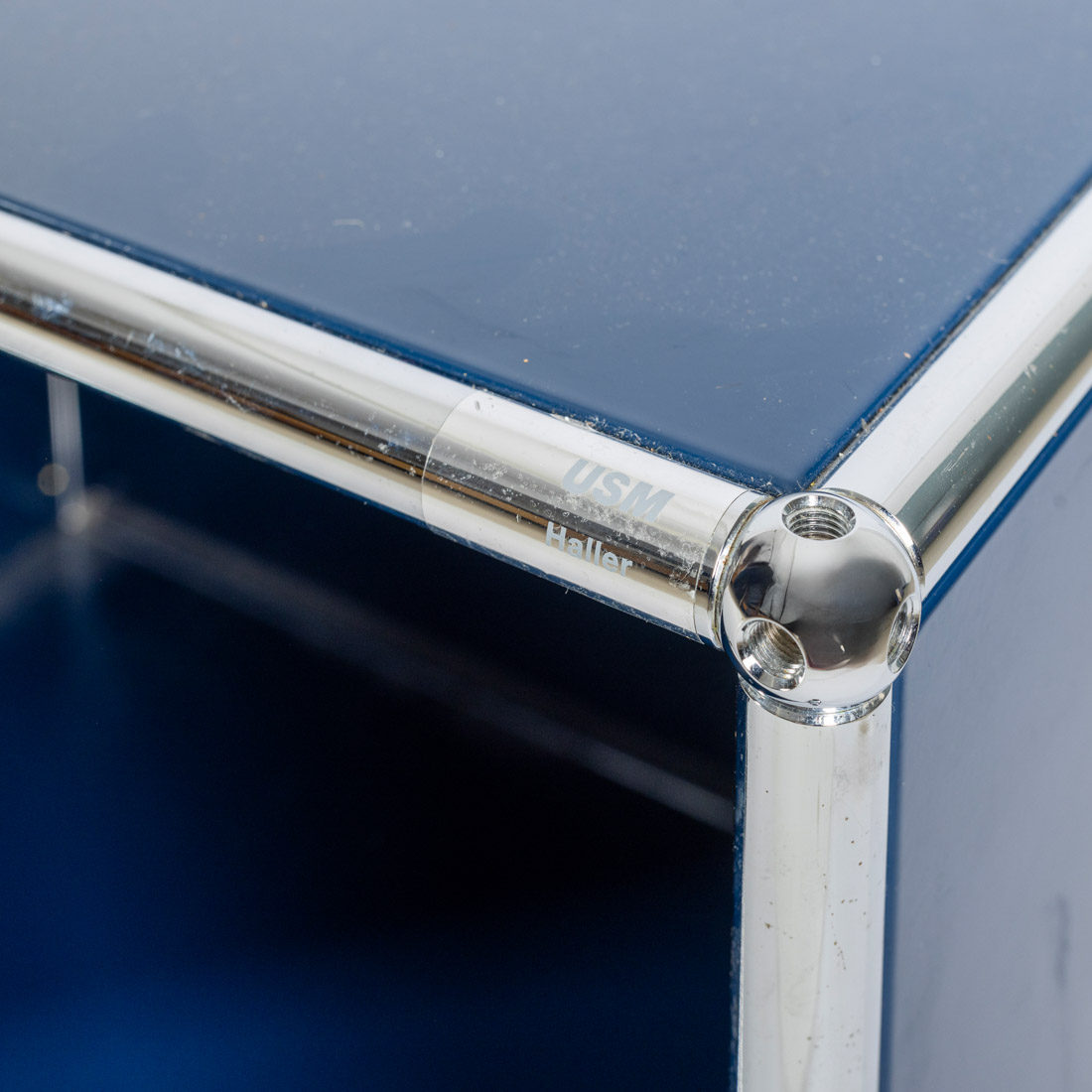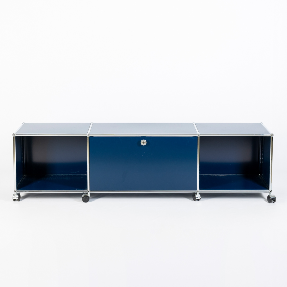Em aço e metal cromado azul escuro. Modular. Suíça. Sinais de uso e pequenos defeitos.
