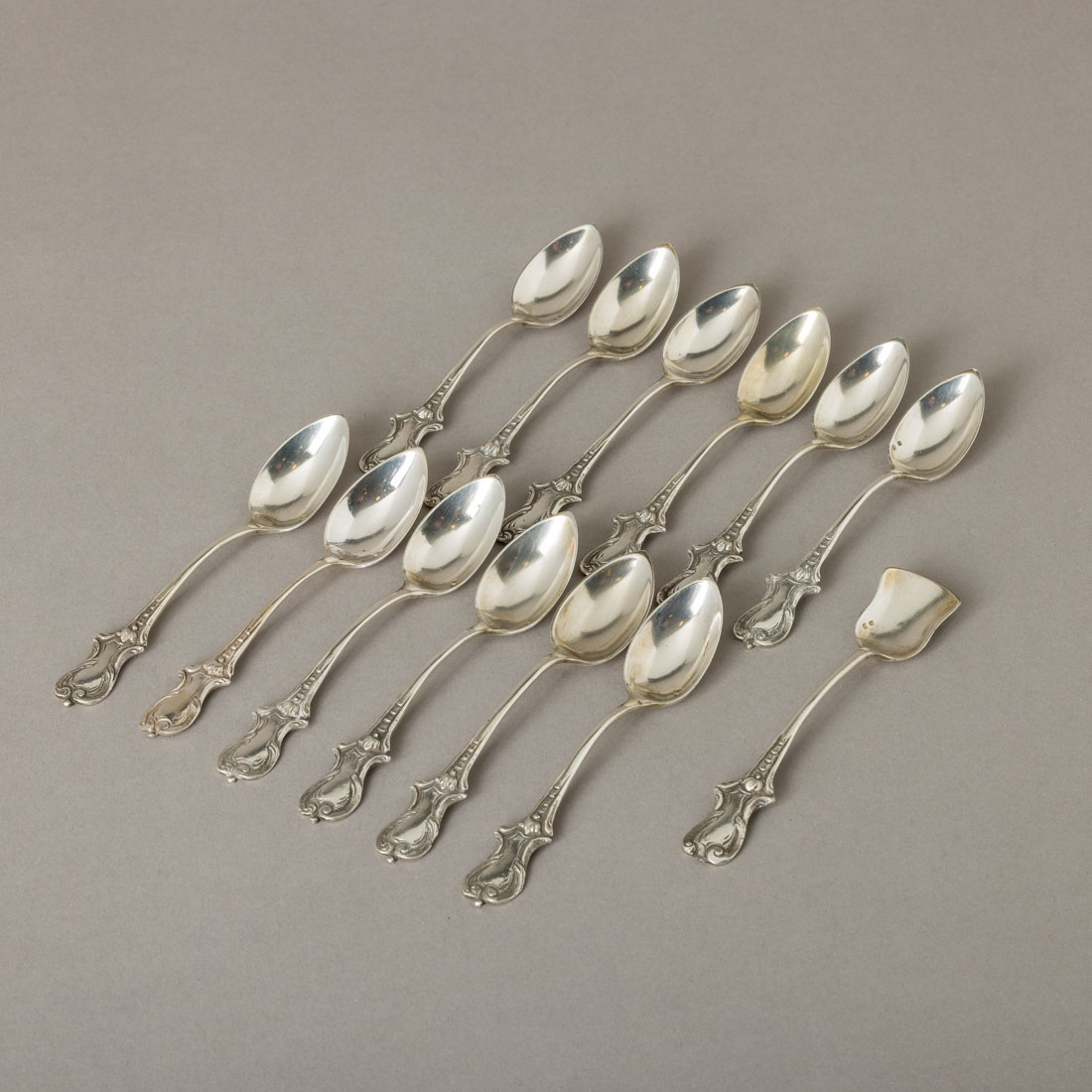 583. CONJUNTO DE DOZE COLHERES E CONCHA DE AÇÚCAR