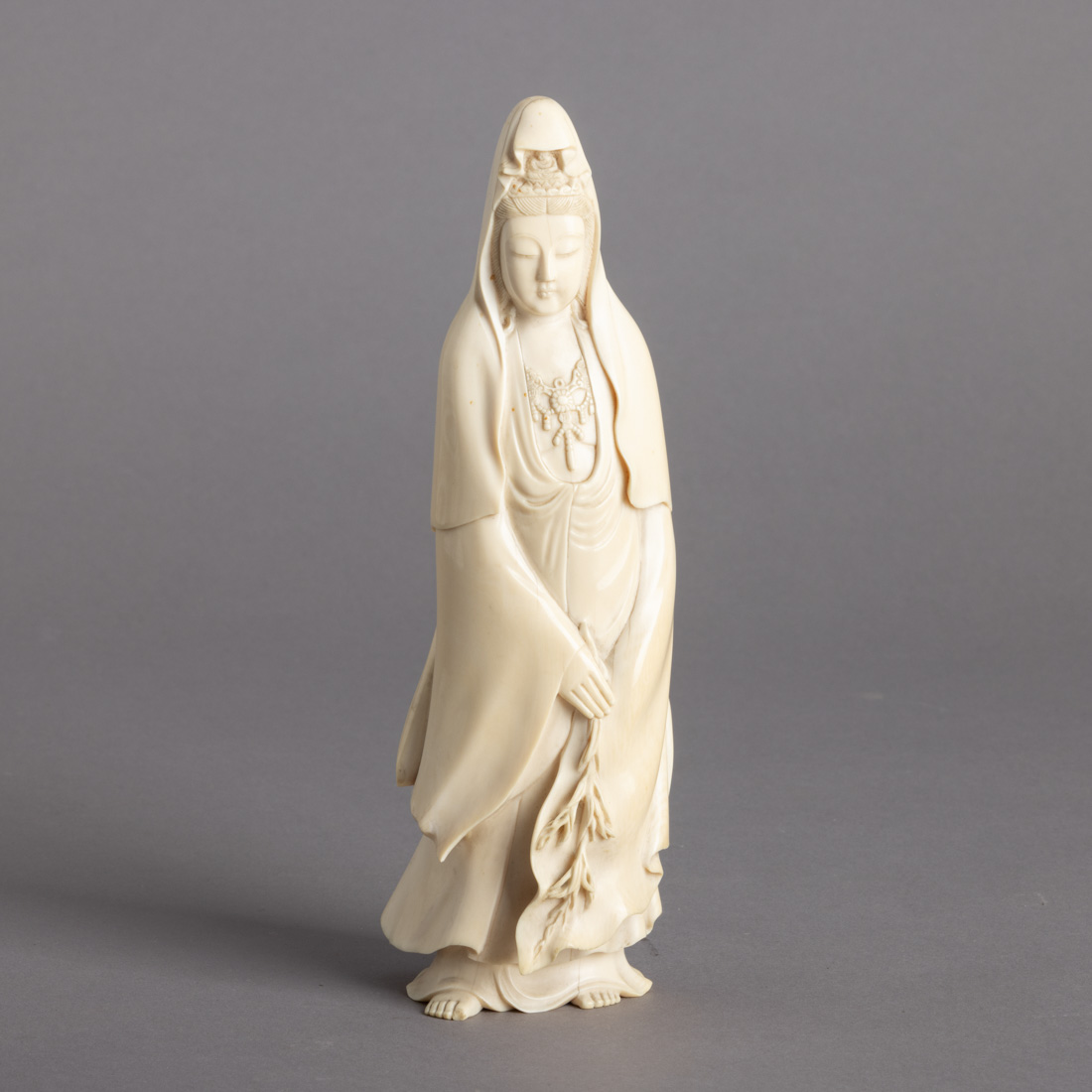 Escultura em marfim, China. Marcada. Séc. XIX. Sinais de uso e falha.