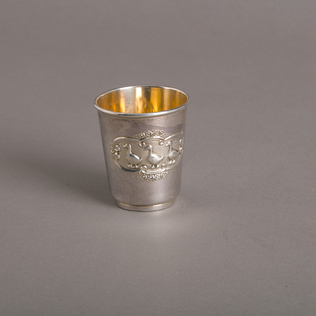 Em prata portuguesa contraste águia (pós 1985) de 835, decoração relevada "patos". Sinais de uso.
