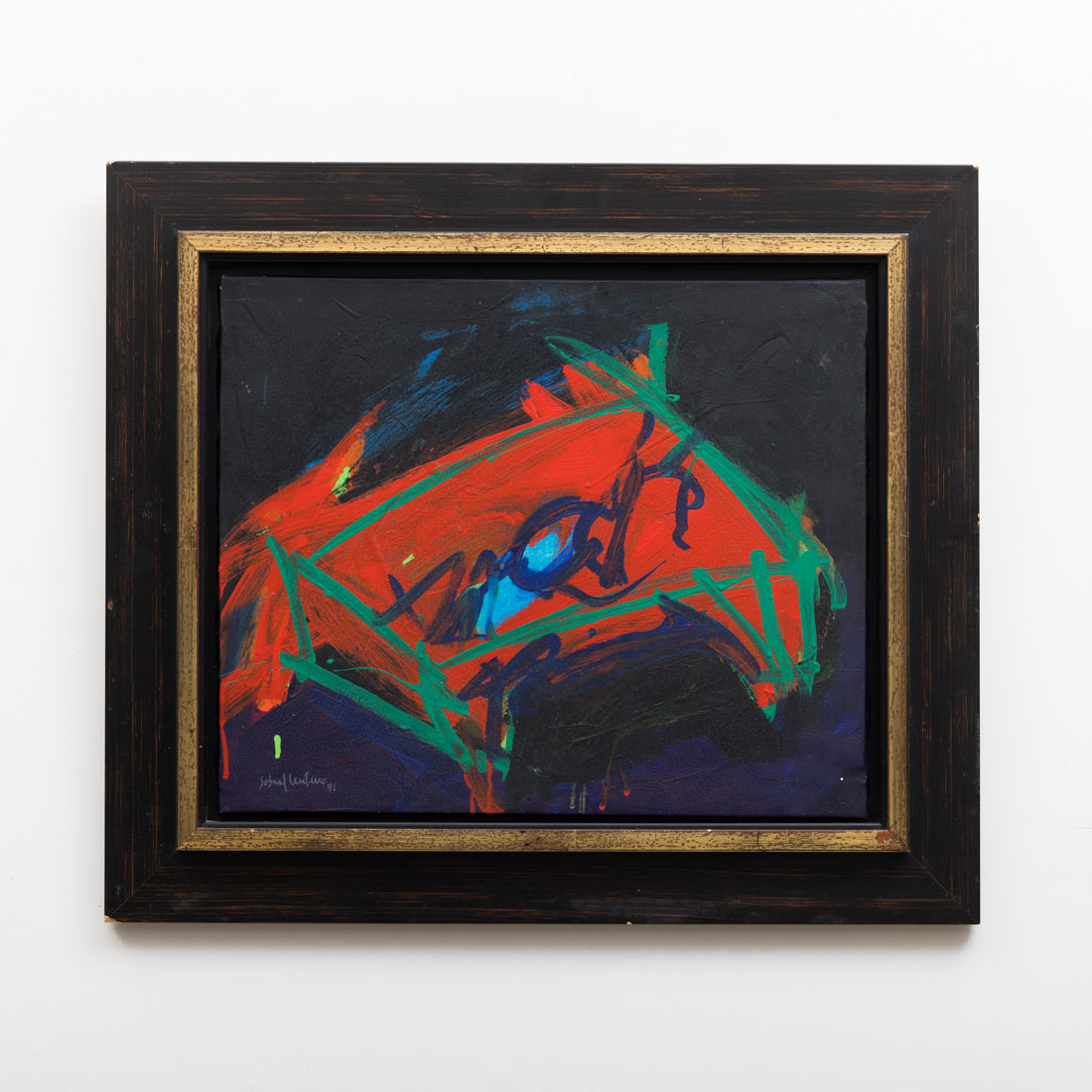 Acrílico sobre tela, assinado e datado 1991, frente e verso.