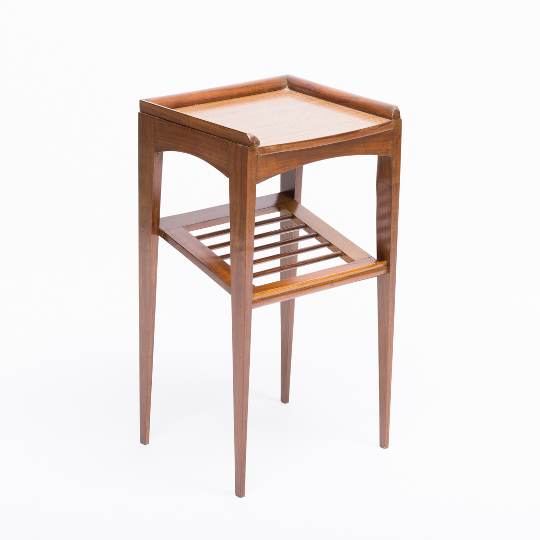 Em diferentes madeiras, tampo em formica. Pequenos defeitos.