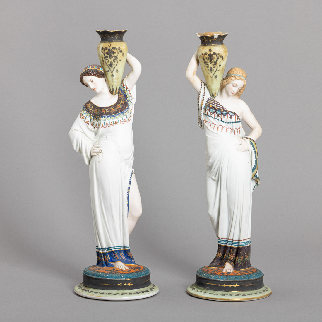 610. DOIS CASTIÇAIS "FIGURAS FEMININAS COM ÂNFORAS"