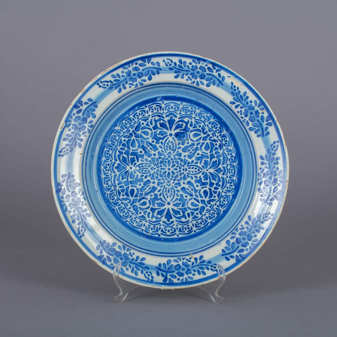 Em faiança portuguesa, decoração a azul "flores". Séc. XIX. Cabelo e pequenas esbeiçadelas.