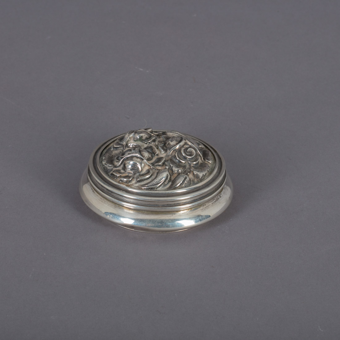 Em prata portuguesa contraste águia (1938-1984) de 833, decoração relevada. Pequenas amolgadelas.