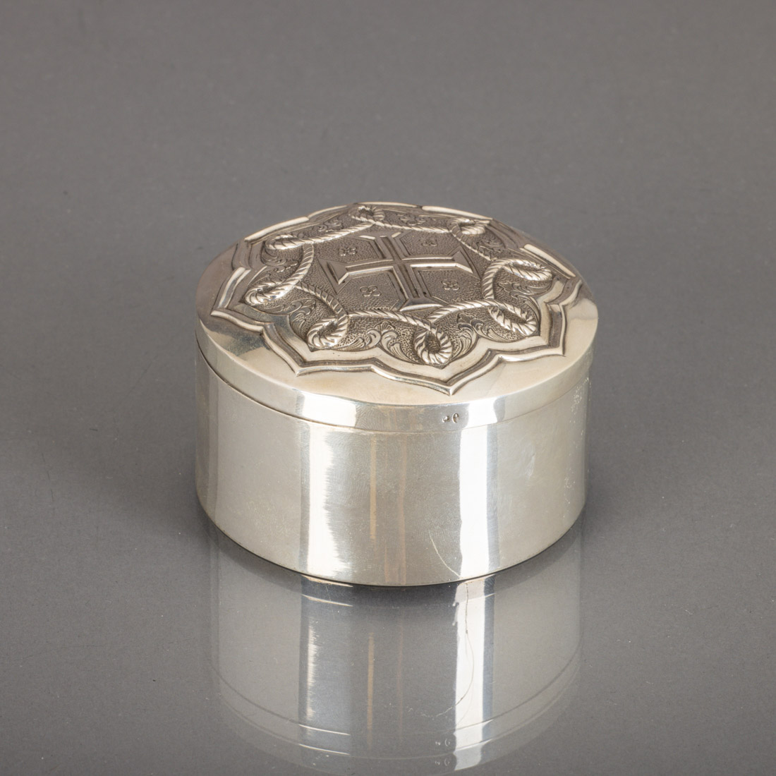 Em prata portuguesa contraste javali (1887-1937) de 833, decoração relevada, estilo Neomanuelino, interior dourado.. Sinais de uso.