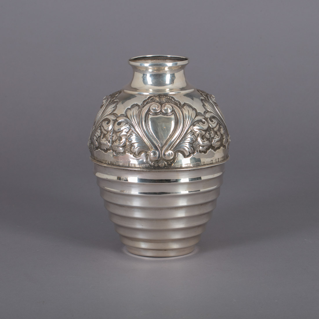 Em prata portuguesa contraste águia (1938-1984) de 833, decoração relevada com volutas, enrolamentos e concheados. Sinais de uso.
