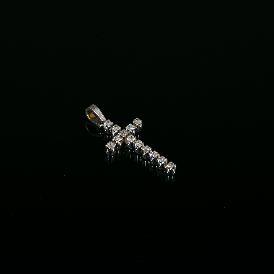 Em ouro branco português de 19,2Kt., contraste formiga e galo (1938-1984) cravejado com treze diamantes talhe brilhante Sinais de uso.