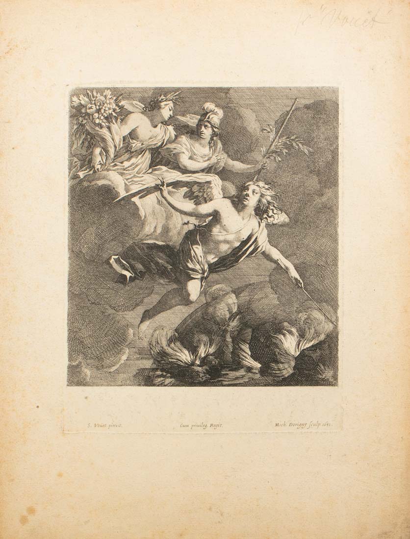 Gravura francesa do Séc. XVII, da autoria de Michel Dorigny (1616-1665). Não emoldurada. Manchas e picos de acidez.
