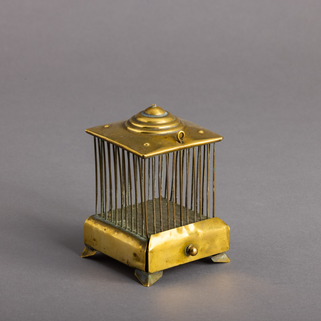 Em metal amarelo com uma gaveta. Pequena falha e defeito.