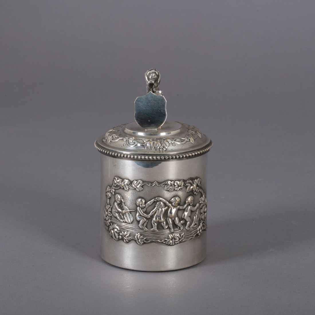 Em casquinha, decoração relevada com parras e uvas reserva "Putti", pega na forma de leão. Marcada Topázio. Sinais de uso, ligeiro desgaste.