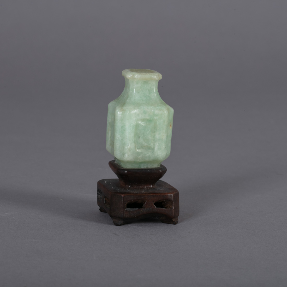 Esculpida em pedra dura, base em madeira exótica. Sinais de uso.