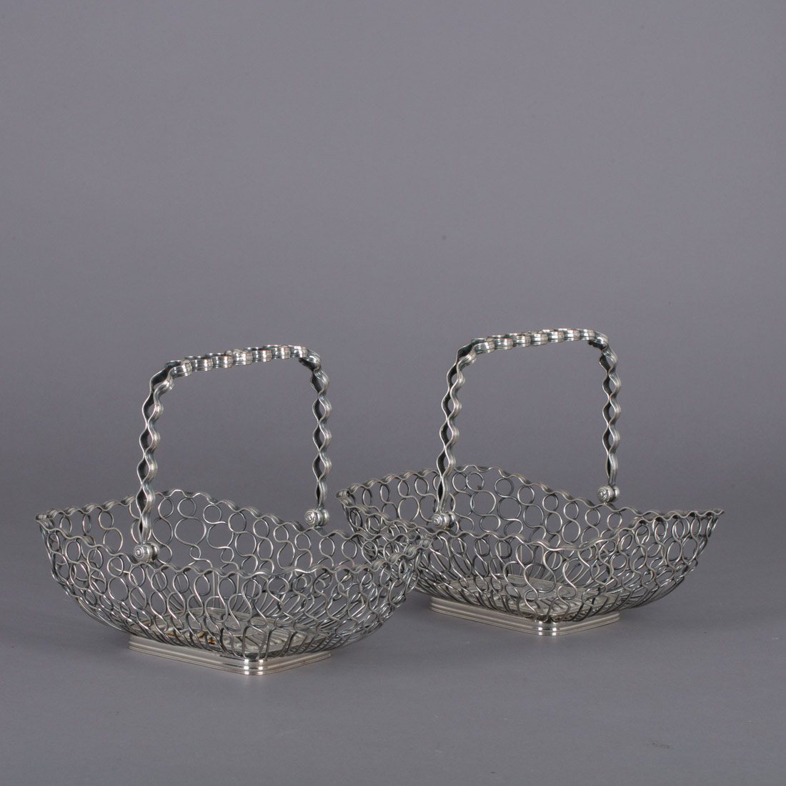 Em metal e fio de metal prateado, decoração relevada "flores". Sinais de uso, ligeiro desgaste.