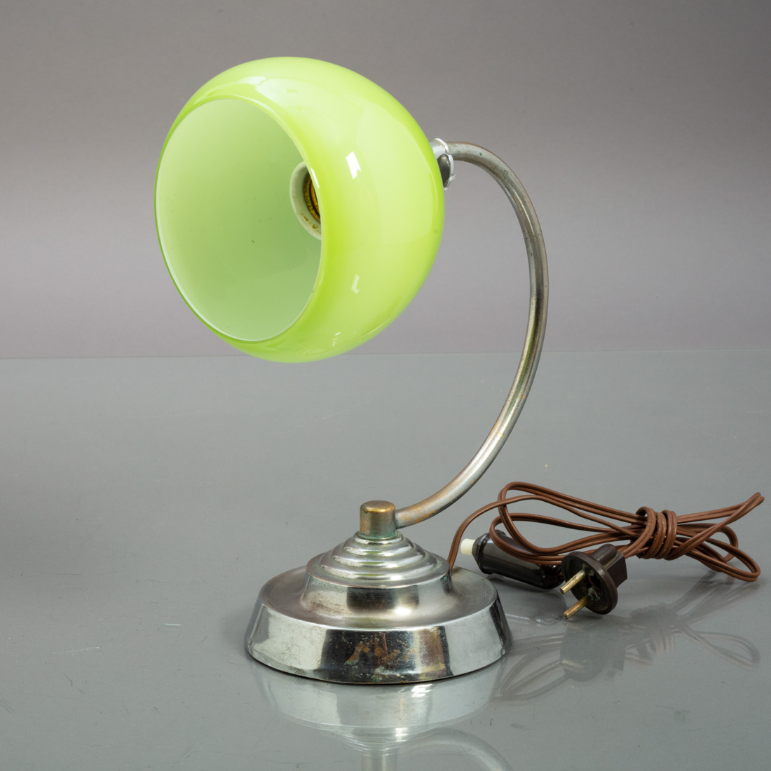Em metal cromado, globo em vidro verde. Ajustável.