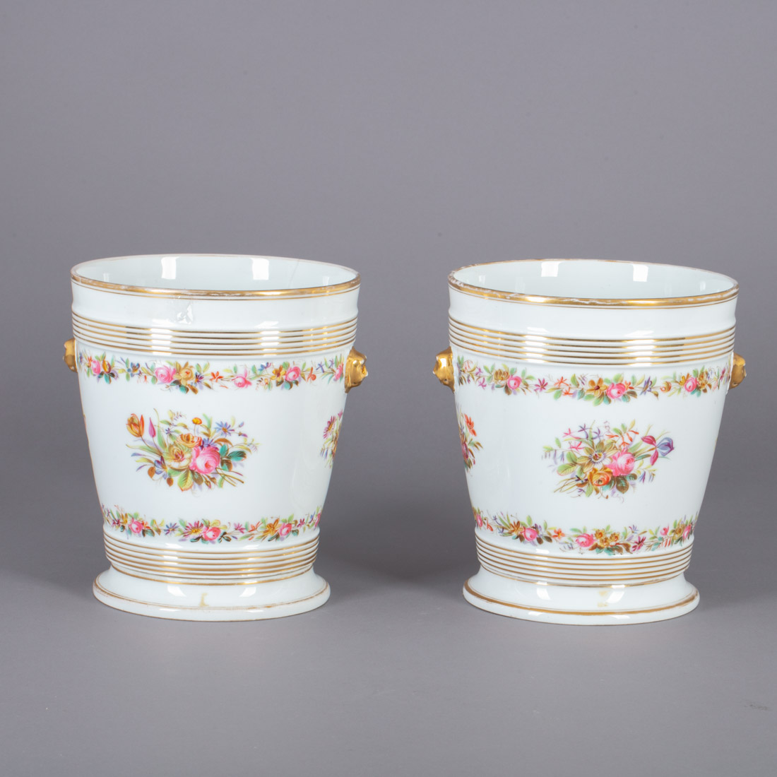 Em porcelana francesa, decoração policromada e dourada "flores". Desgaste no dourado e cabelos.