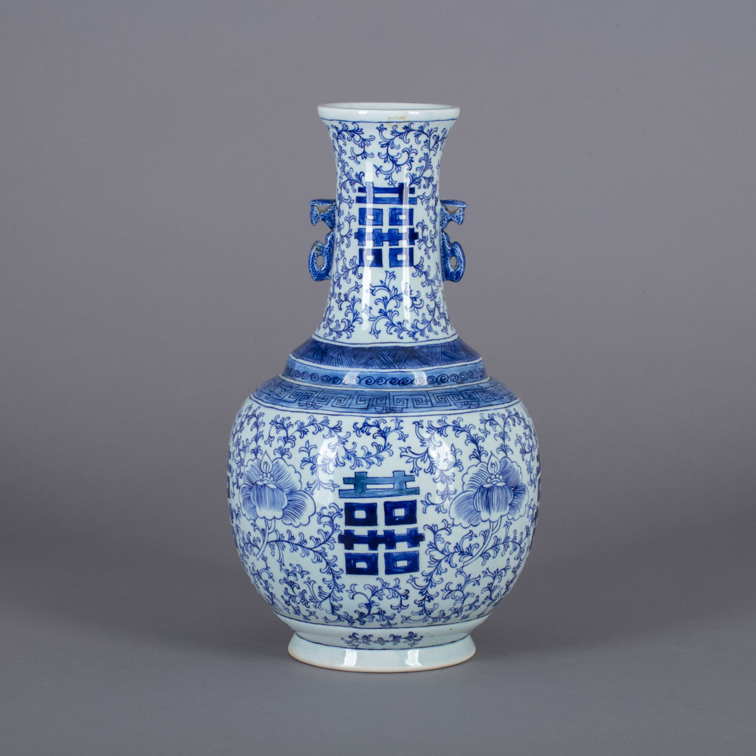 Em porcelana da China, decoração a azul com elementos vegetalistas e geométricos. Marcada. Sinais de uso.