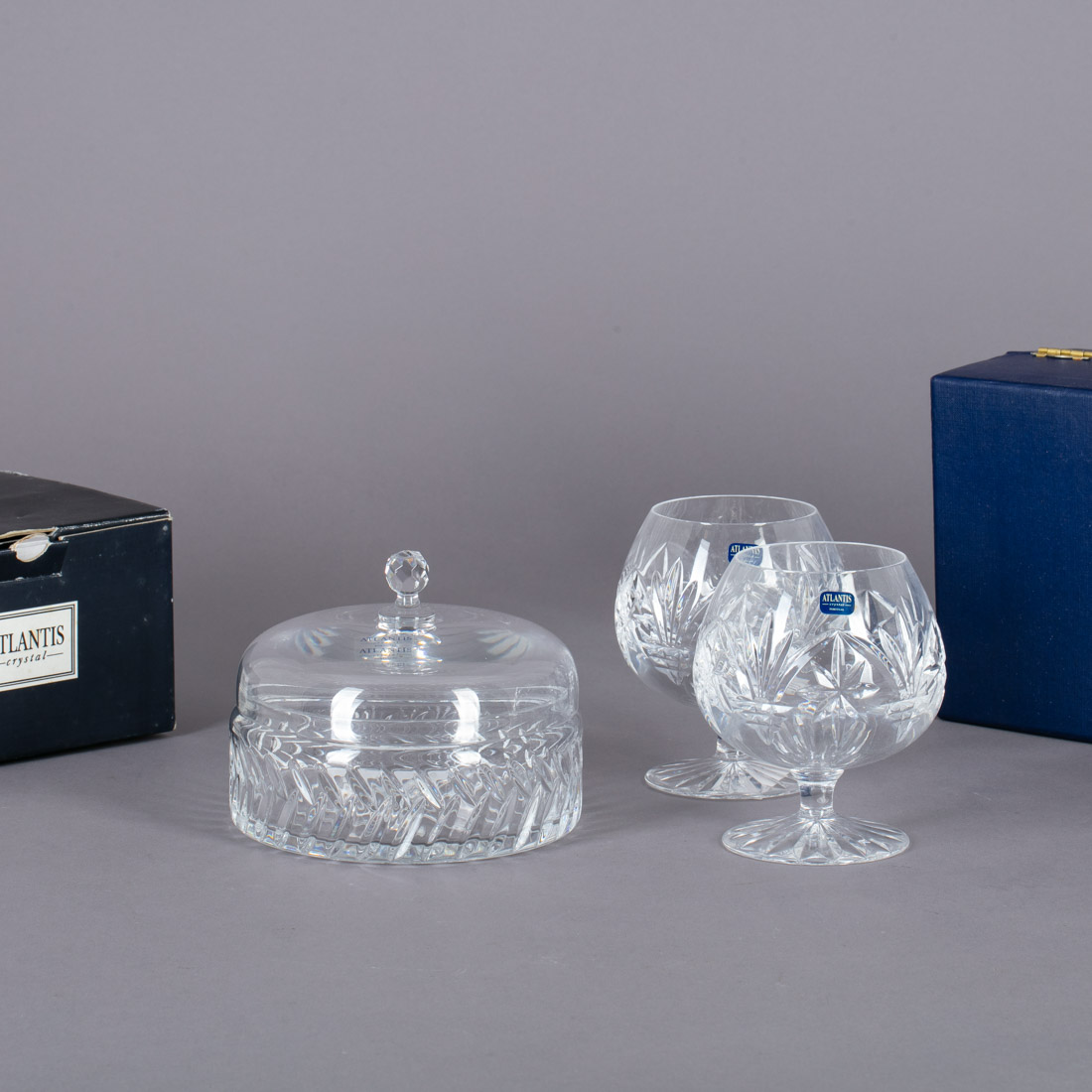 Em cristal Atlantis moldado. Com caixas. Sinais de uso.