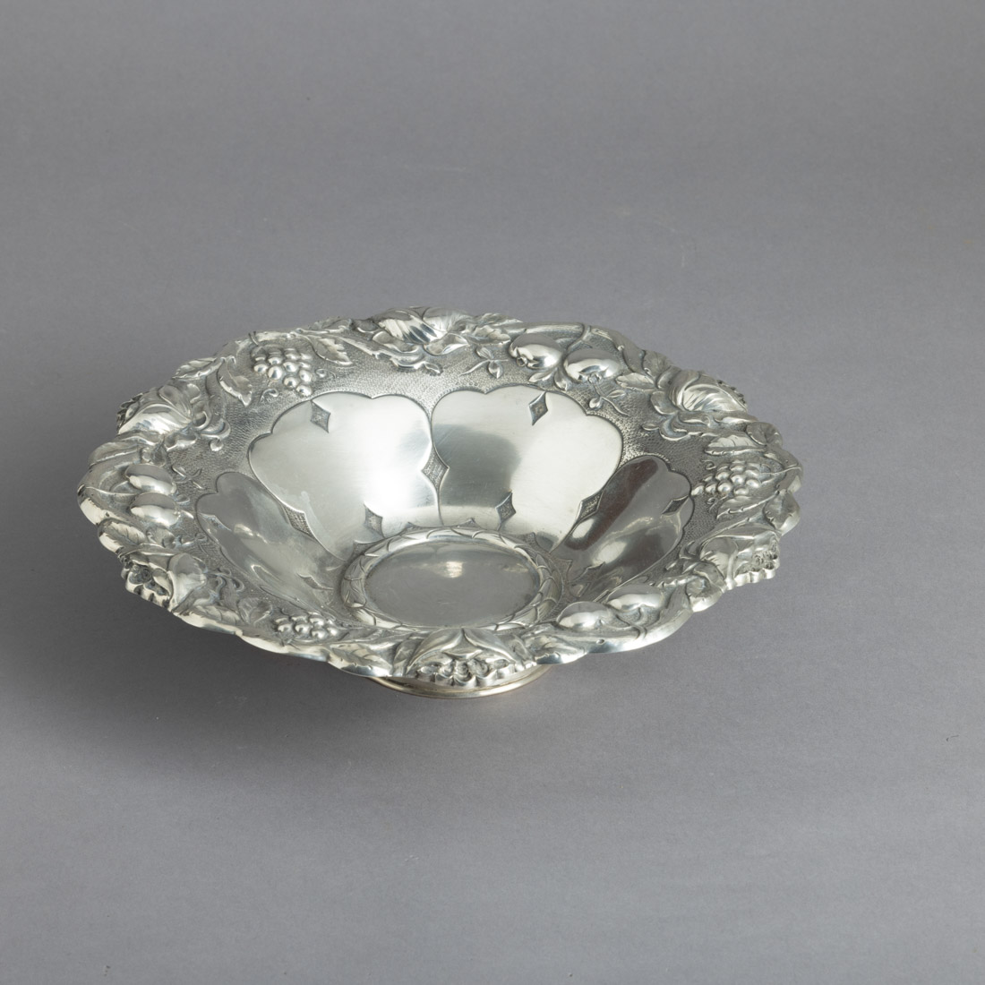 Em prata portuguesa contraste águia (1938-1984) de 833, decoração relevada "frutos e flores". Sinais de uso.
