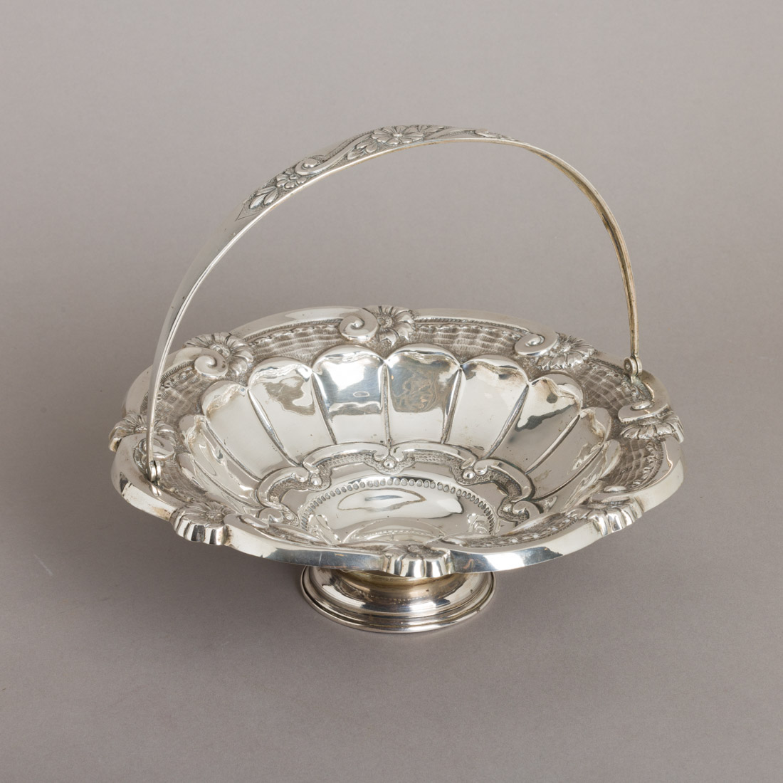 Em prata portuguesa contraste águia (1938-1984) de 833, decoração relevada com concheados e flores. Sinais de uso.