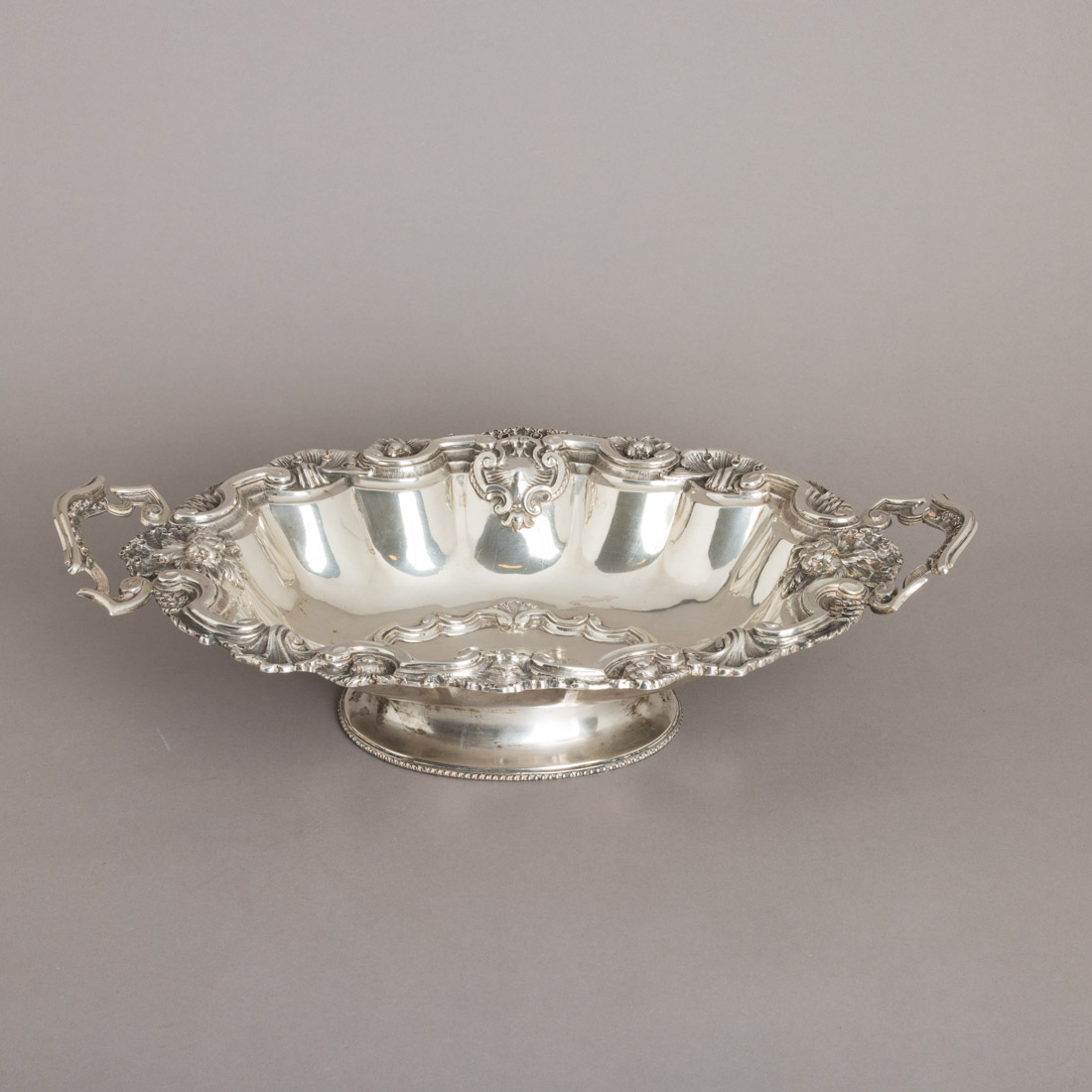Em prata portuguesa contraste javali (1887-1937) de 833, marcada Guia, Lisboa, decoração relevada com enrolamentos, flores e concheados. Sinais de uso.