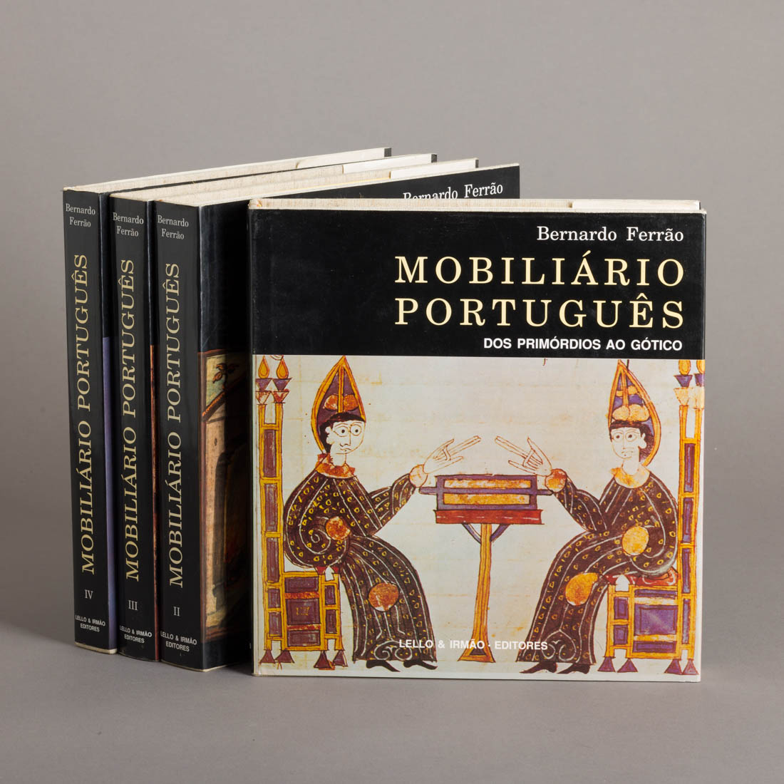 Obra em 4 volumes, por Bernardo Ferrão, uma das mais importantes até hoje publicadas sobre a história do móvel. Lello & Irmão Editores, Porto. Encadernação do editor. Sinais de uso.