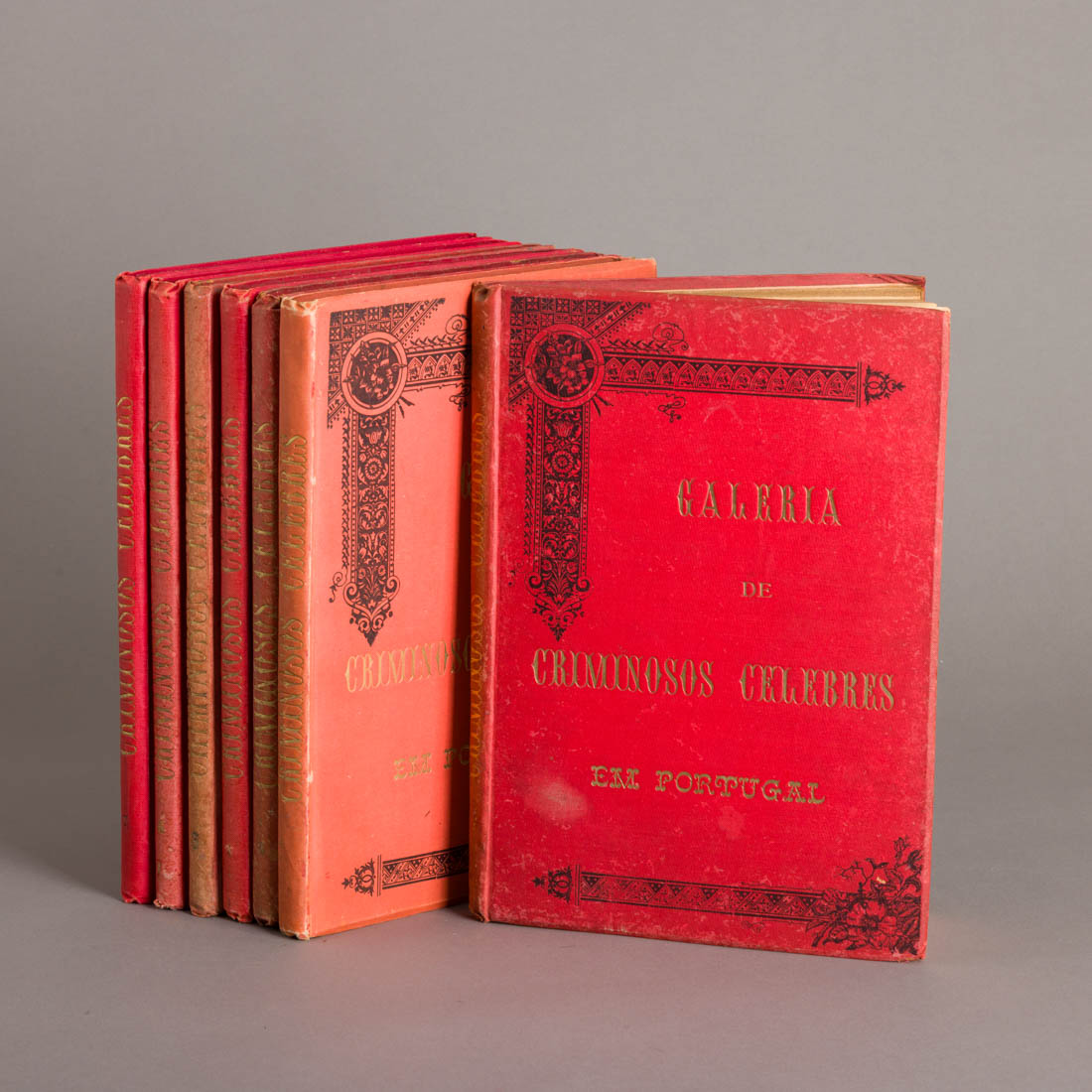 Em sete volumes. História da Criminologia contemporânea sob o ponto de vista descriptivo e scientifico dirigida por Eduardo Fernandes e Santos Junior. Editor António Palhares. Pequenos defeitos e picos de acidez.
